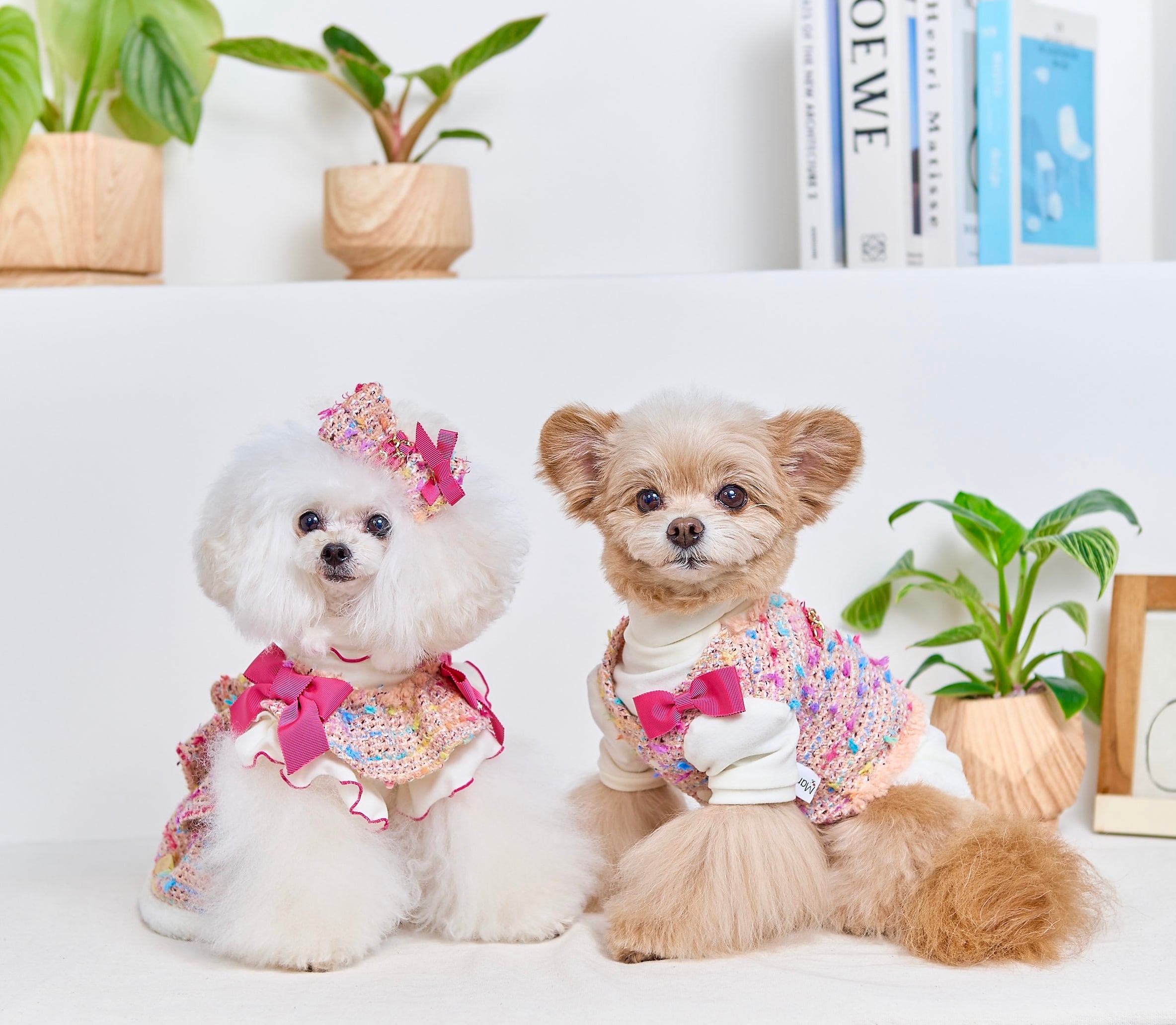 お揃いのヘアクリップ、男の子用のベストもご用意致しました。