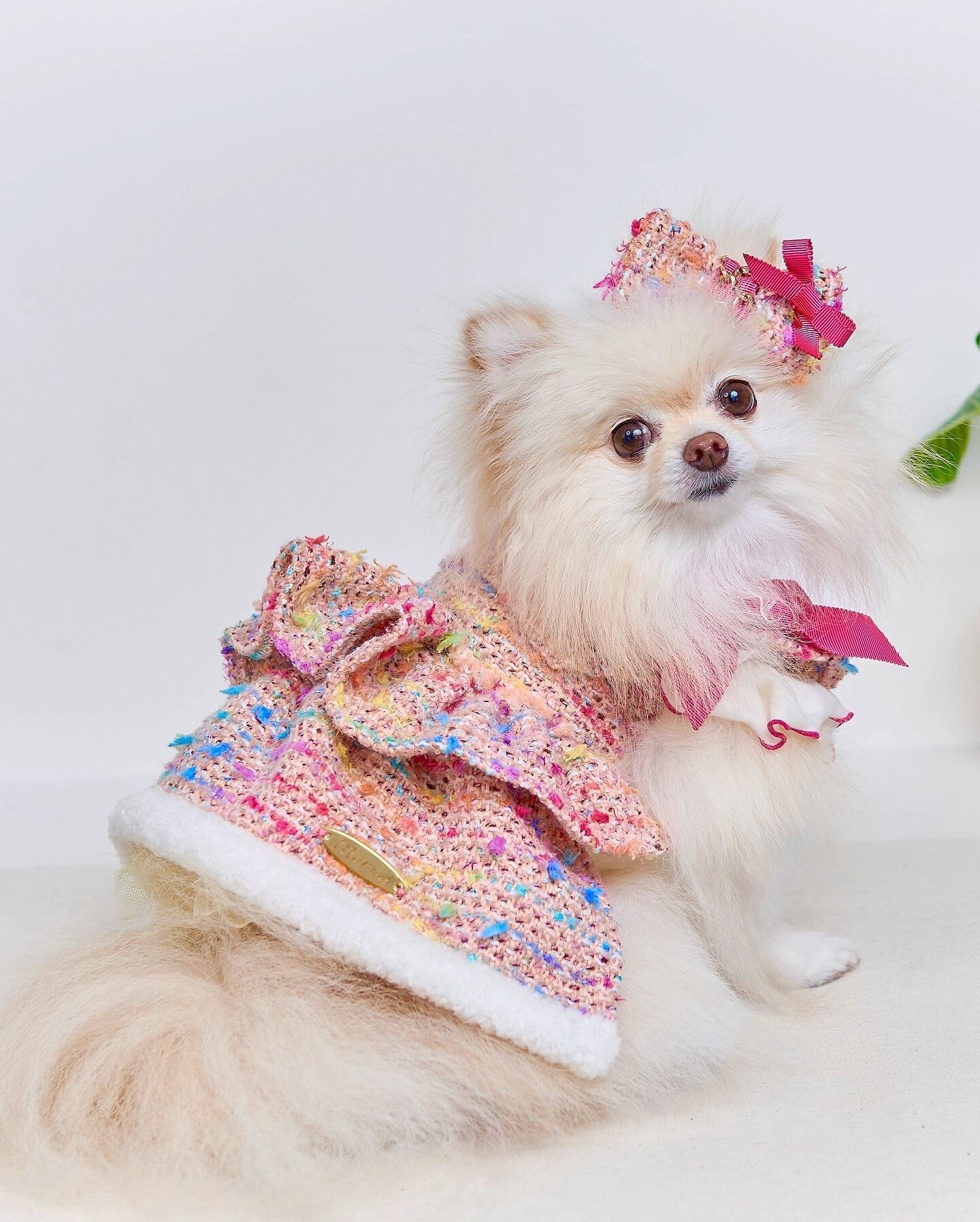 『Couleur Tweed ヘアクリップ』 Couleur Tweedシリーズのお洋服とお揃いのツイード生地のおリボン。 中央にはチェーンを巻いて華やかに。 グログランリボンもアクセント♪ COLOR/PINK SIZE:5㎝×8㎝ 12g 初回生産発売日 2025年10月末日~11月初旬