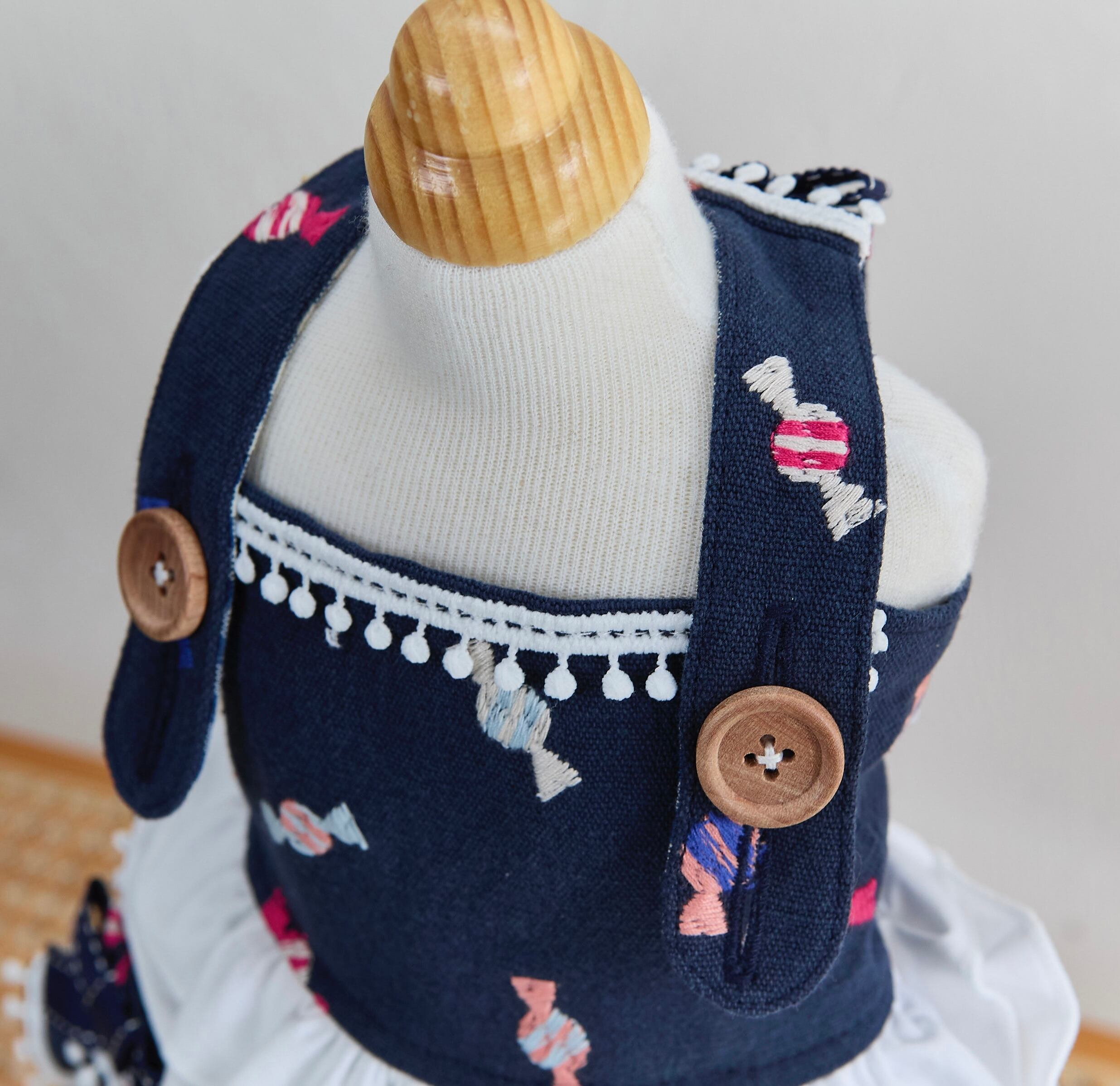 秋冬らしい落ち着いた色味にカラフルなキャンディ柄が刺繍されたジャンパースカート