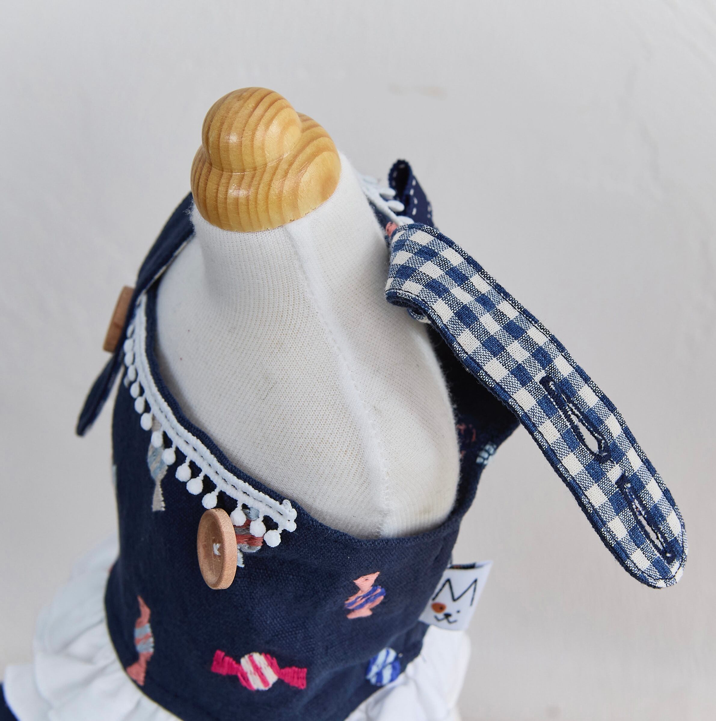 肩紐はウッドボタンで2段階に調整が可能で、1枚でもインナー合わせでもご着用頂けます。