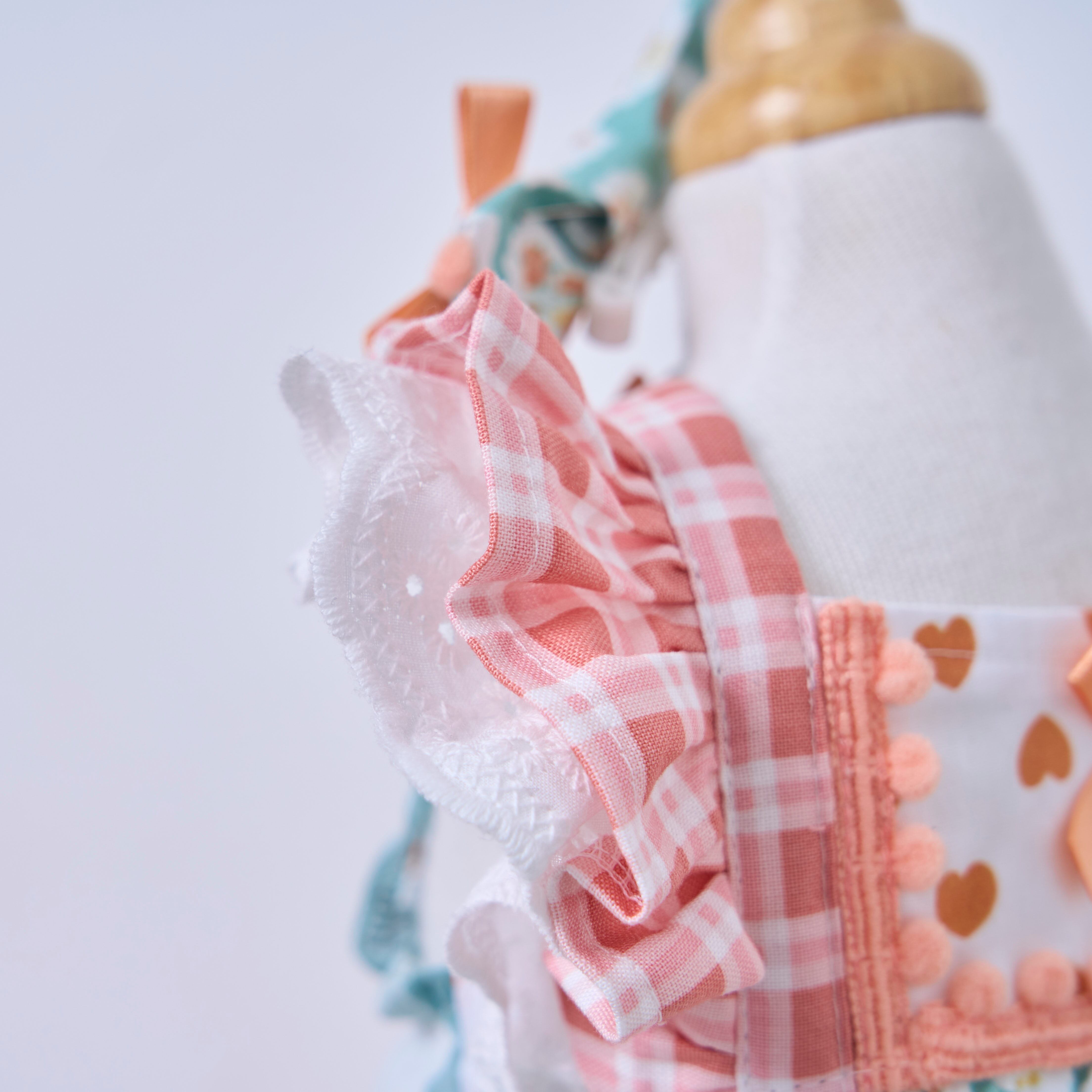 お袖の内側にはコットンレースをあしらいお顔周りを華やかに。
