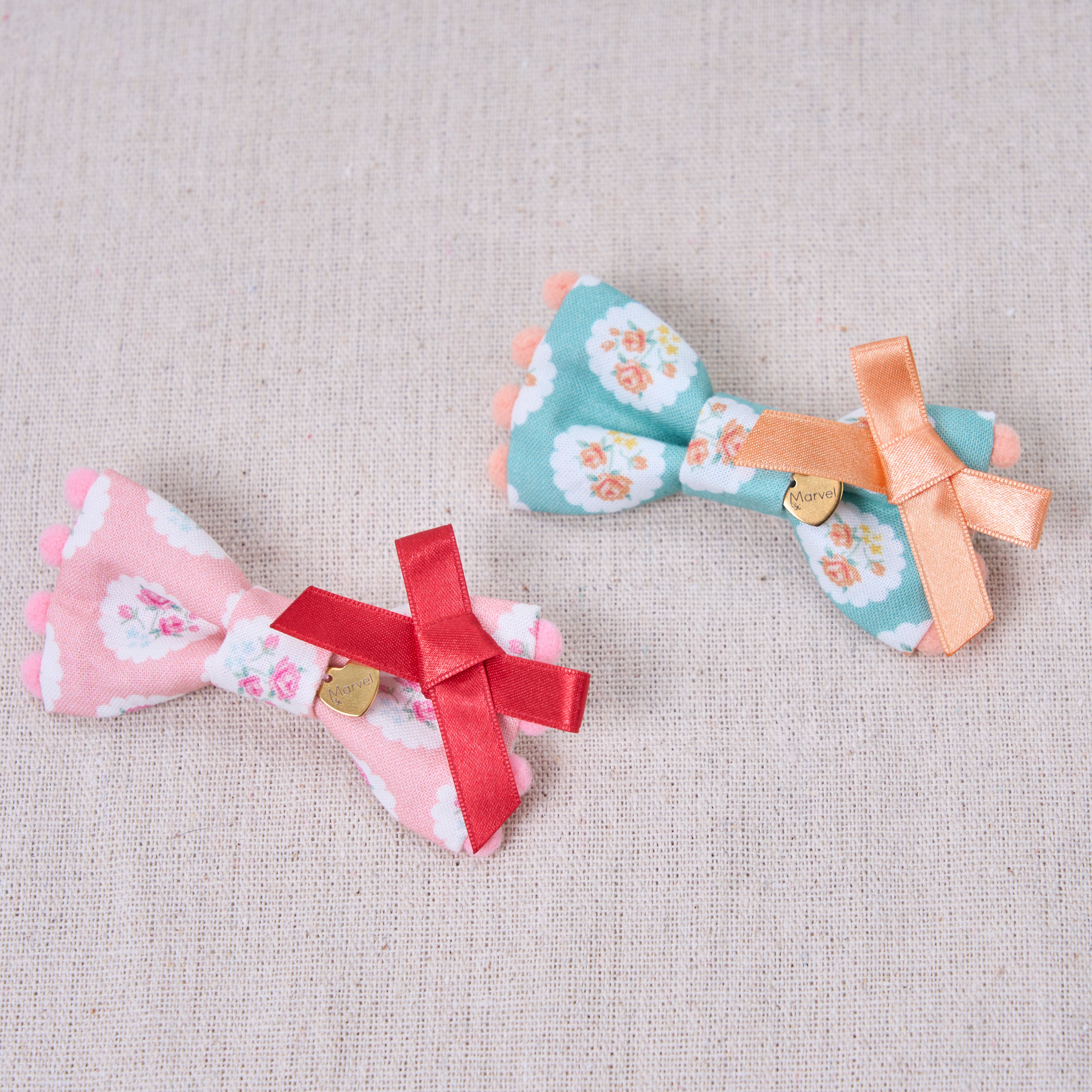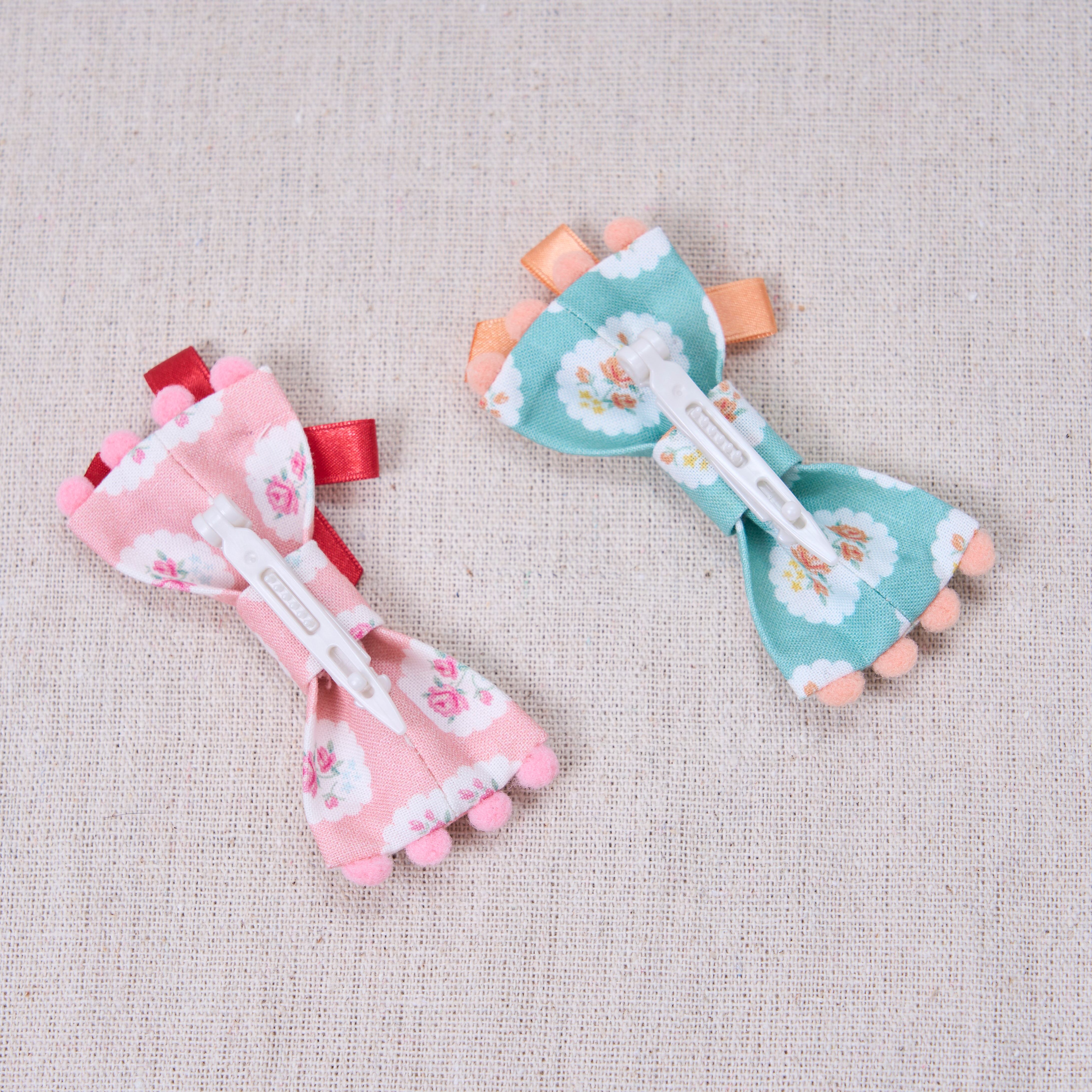 サイドにはポンポンをあしらい、サテンおリボンで華やかさをプラス。