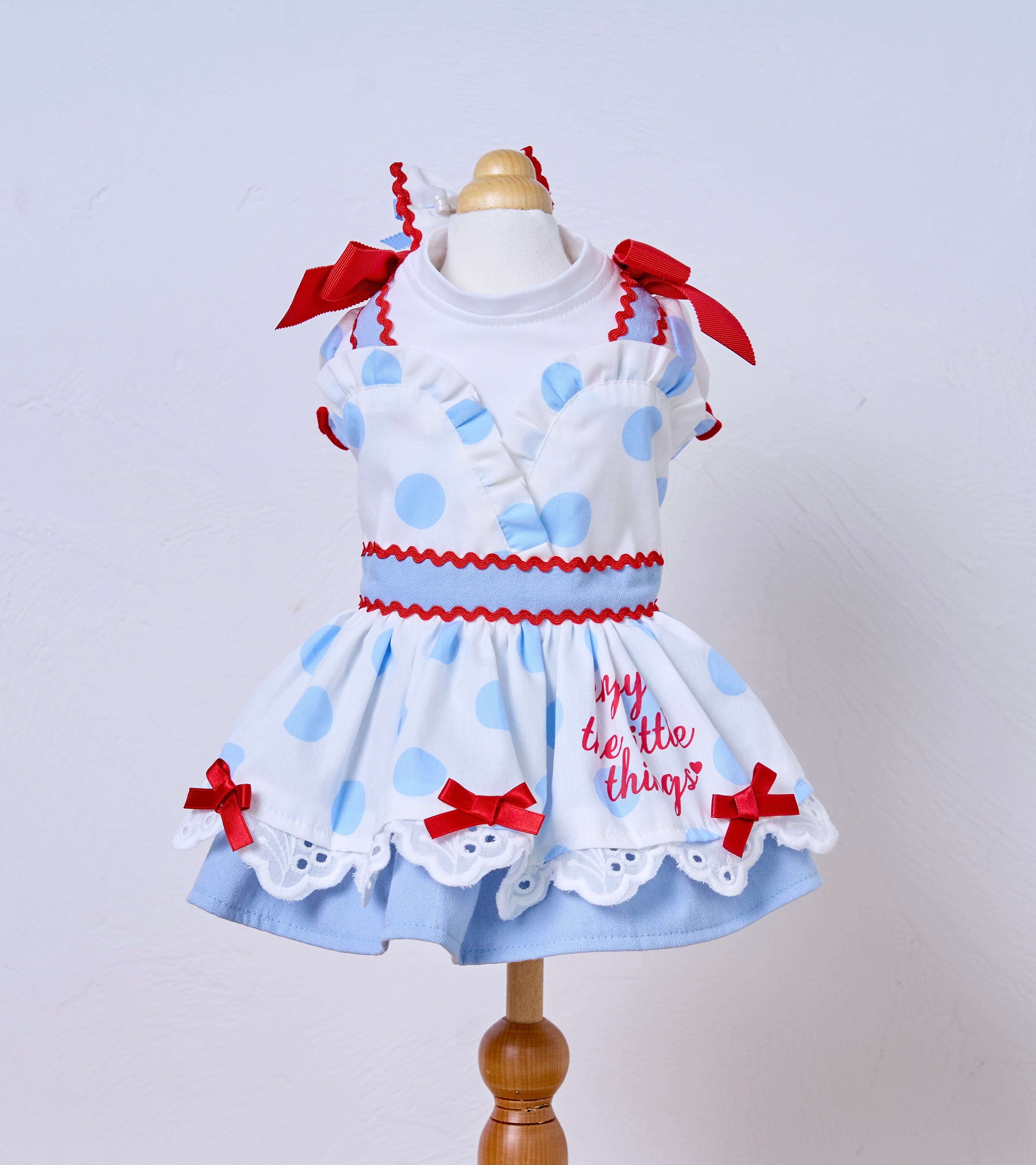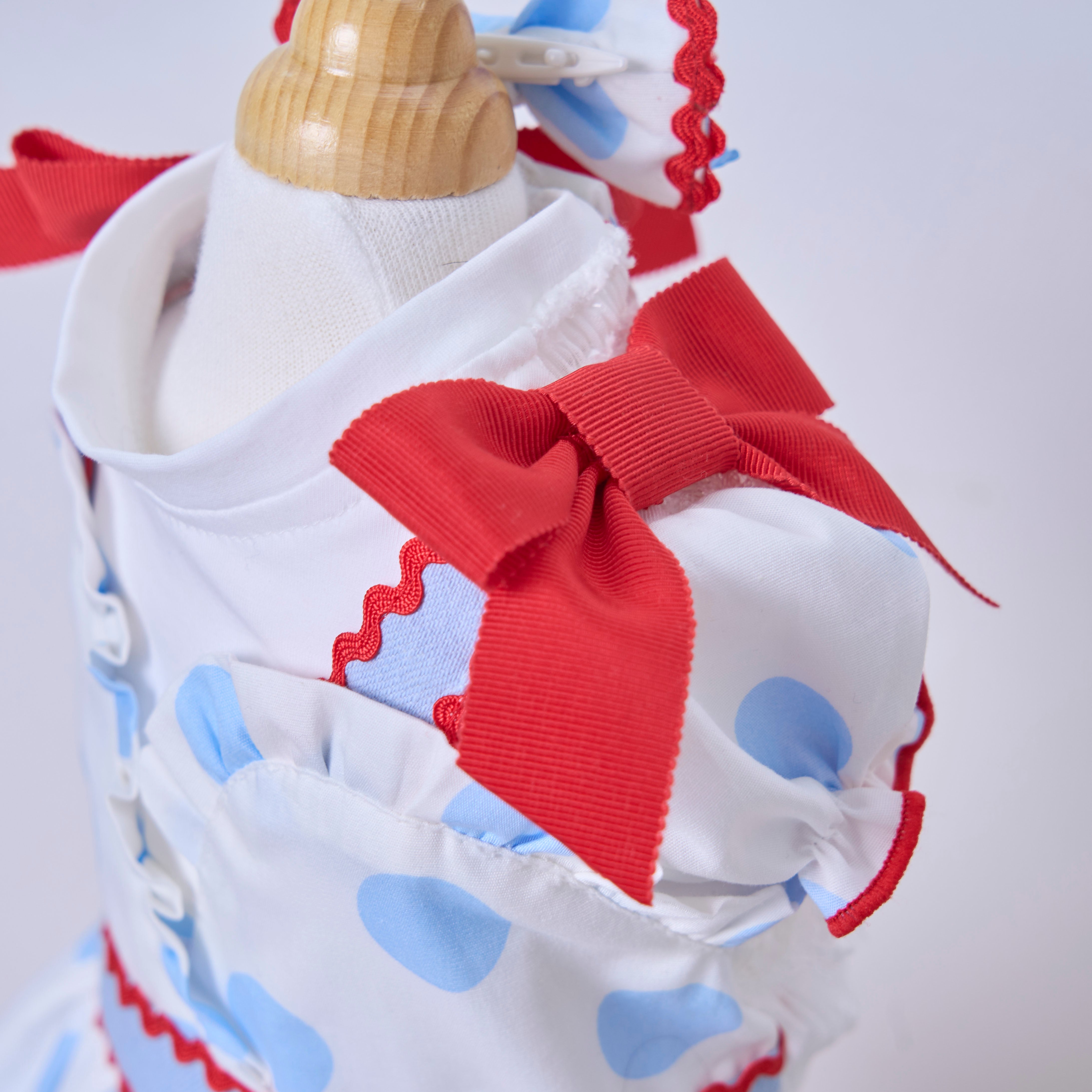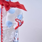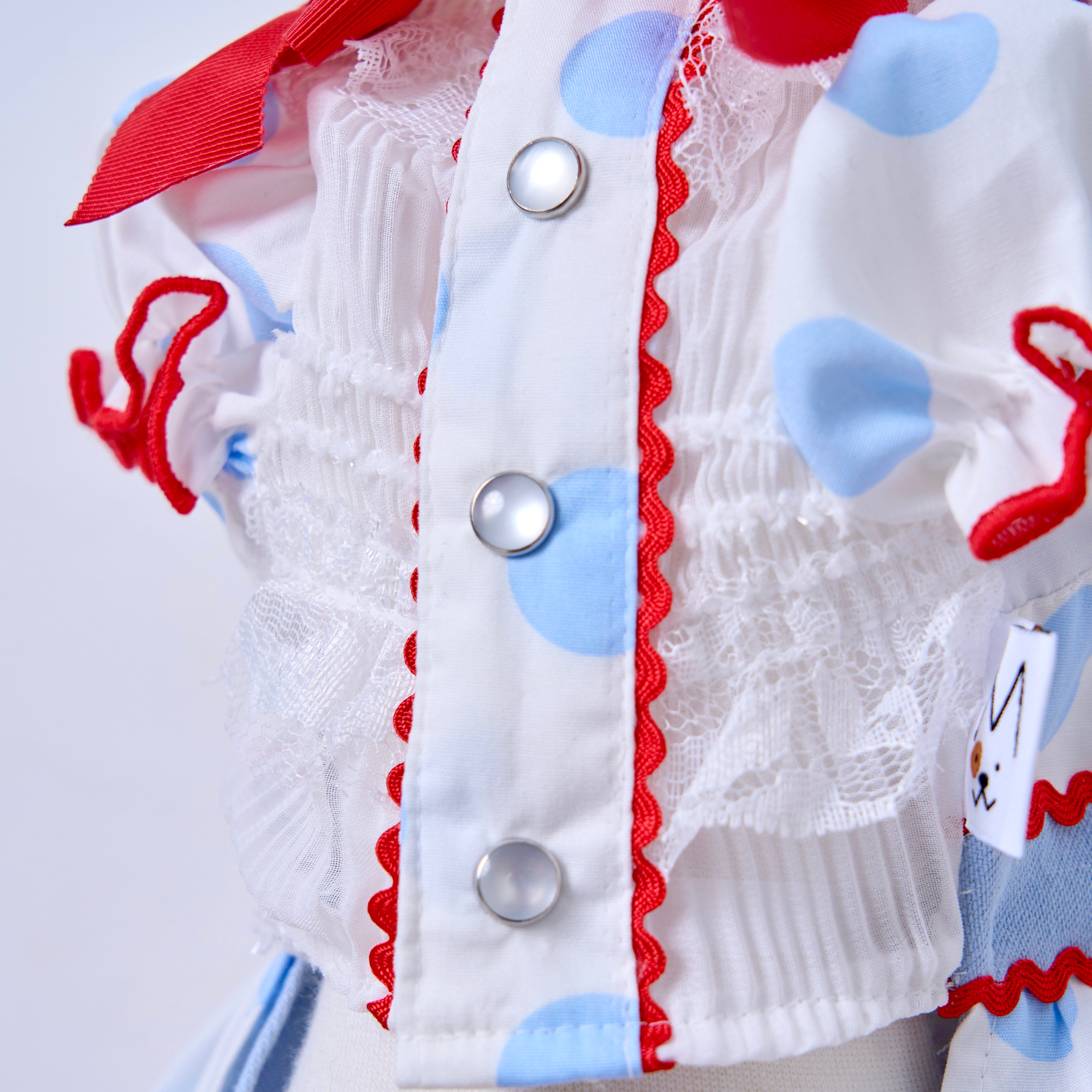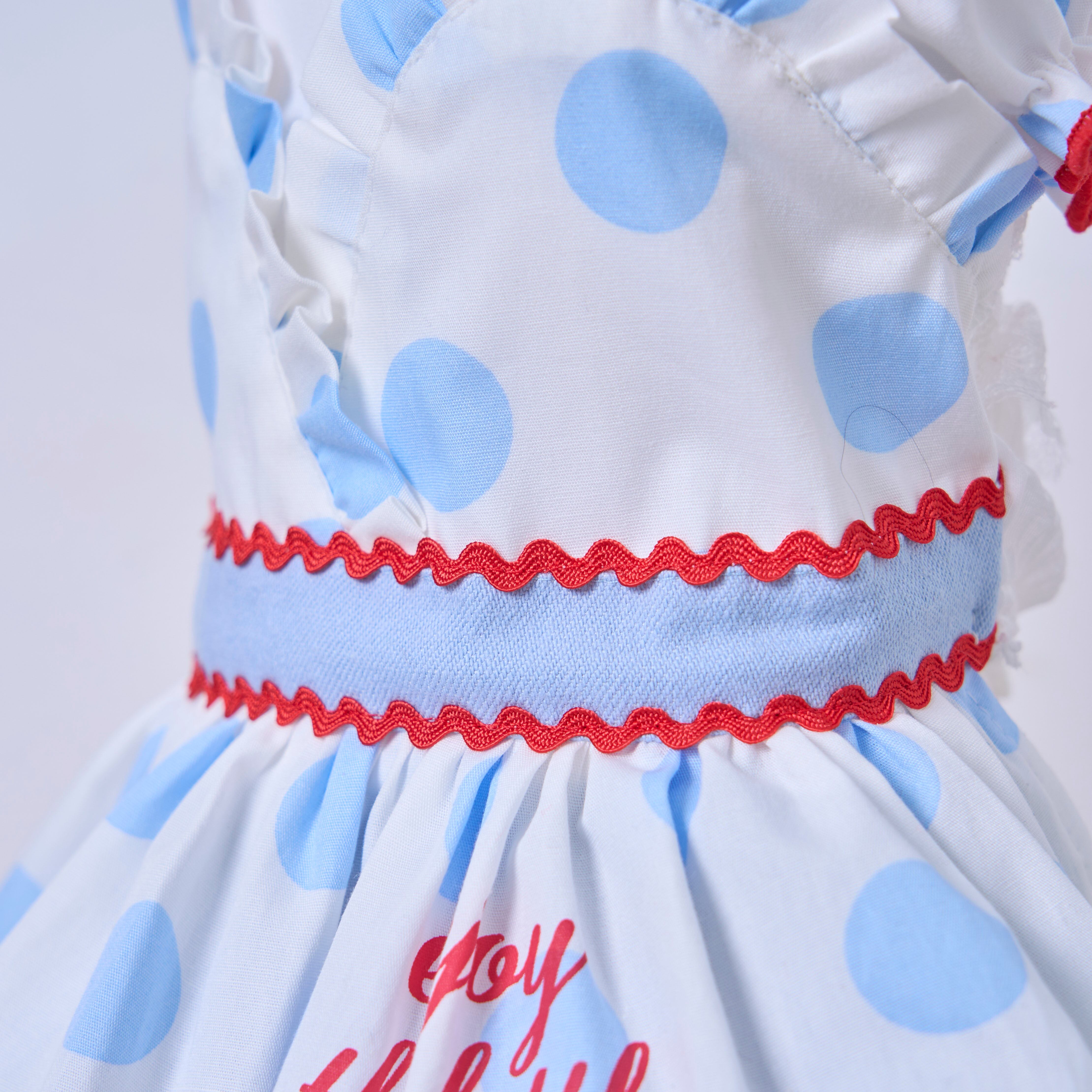 ドット柄×アイスブルーを組み合わせたカシュクールスタイルのふんわりボリュームスカート