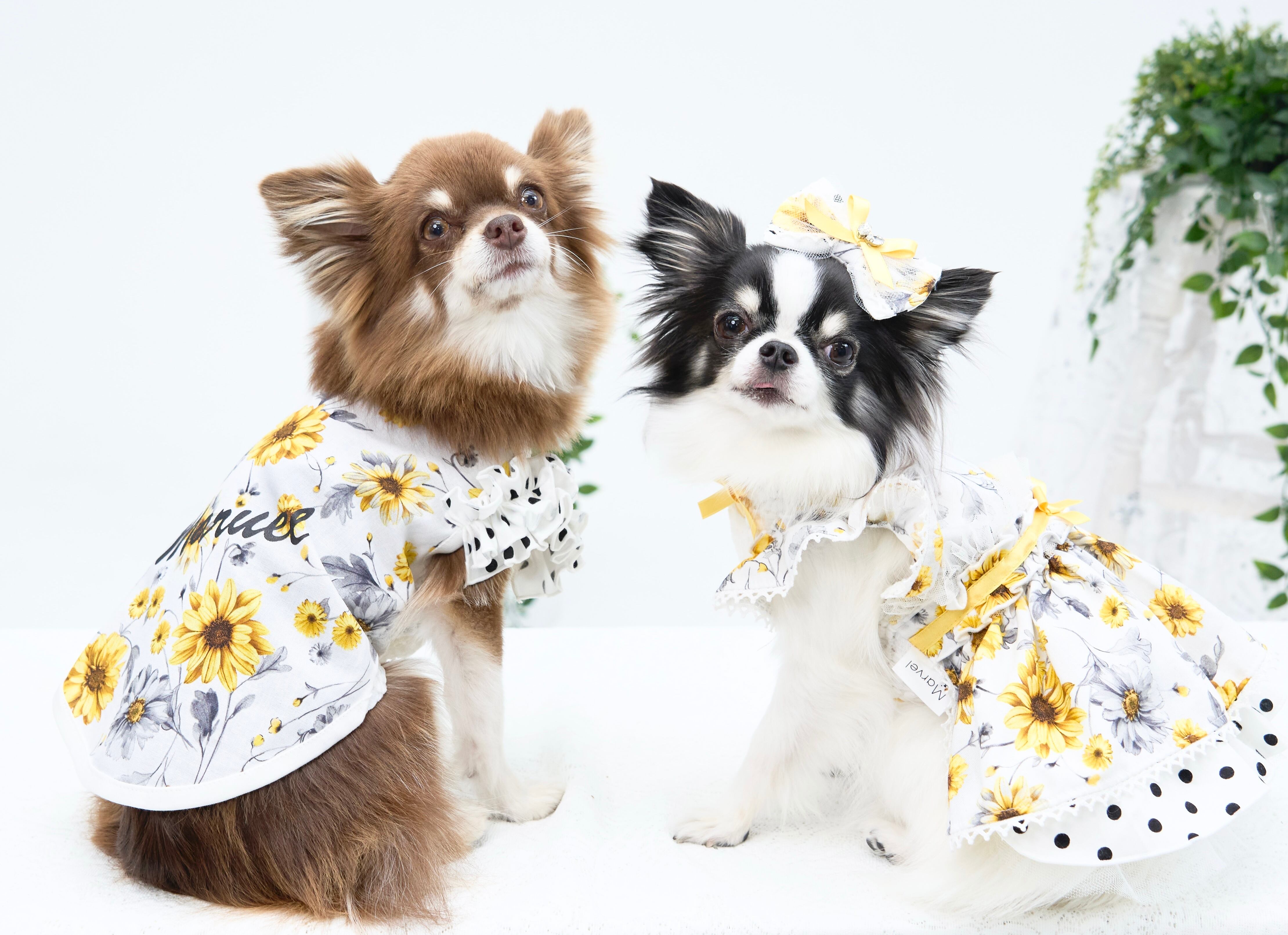 前胸は伸縮性の高いコットンレース生地を使い涼しげで、かつスナップ開閉ですので被りが苦手なワンちゃんも快適にご着用頂けます。