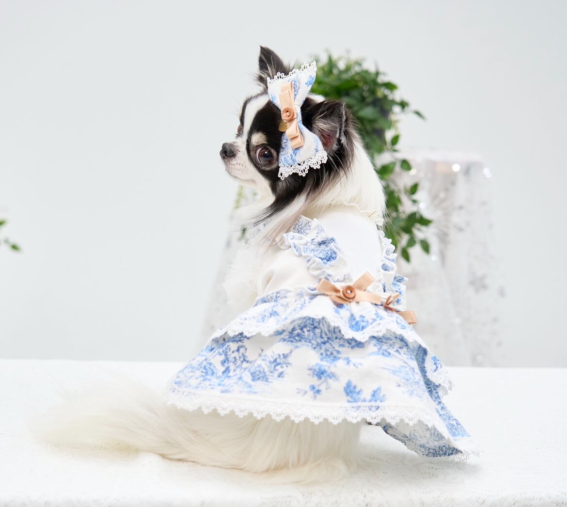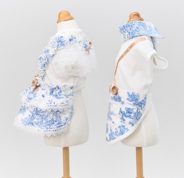 トワルドジュイ生地を主役にしたジャンパースカート風ワンピース。
